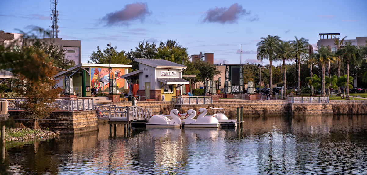 For a more laid-back and family-friendly experience, make your way to Oviedo on the Park, a hidden gem that proudly showcases the city’s charming character. Centered around a picturesque lake, this enchanting park features a playground, dog park, splash pad, amphitheater, and swan paddle boat rentals.